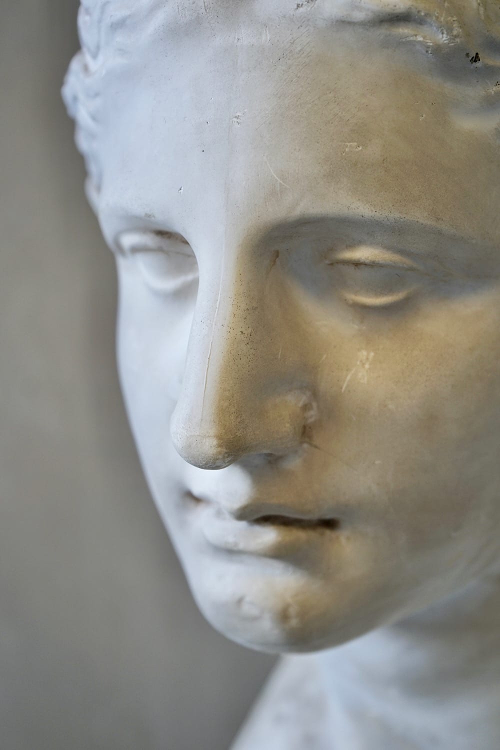 A highly decorative plaster bust of Venus de Milo, with excellent original patina.