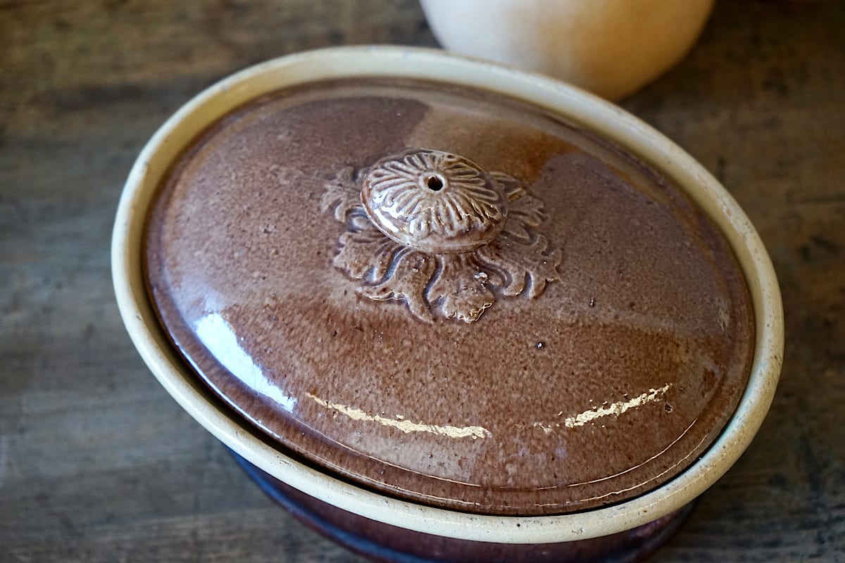 A selection of five antique earthenware terrine dishes with lids. All in excellent condition. See individual photos below.