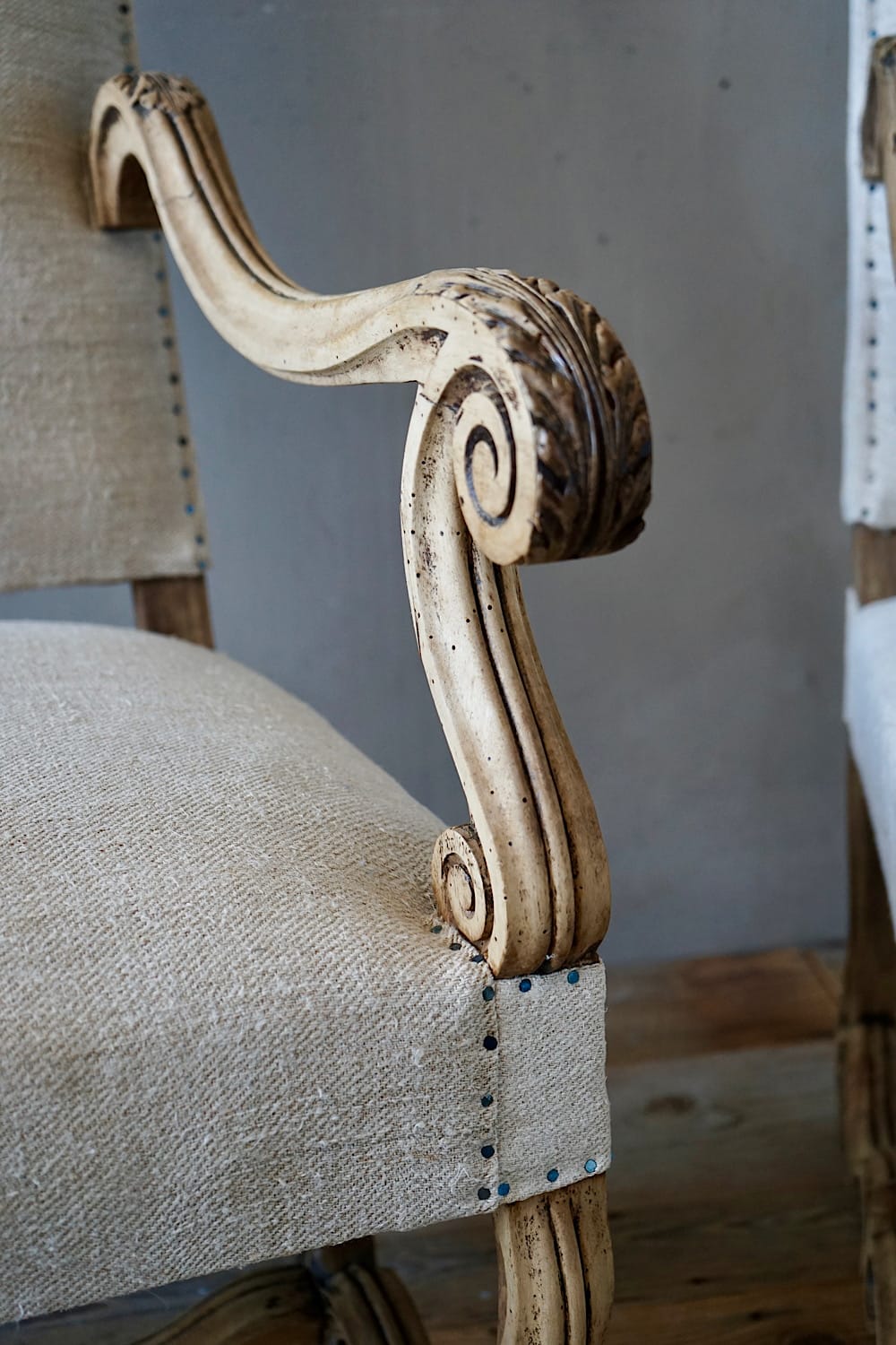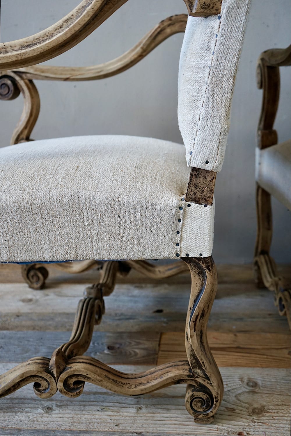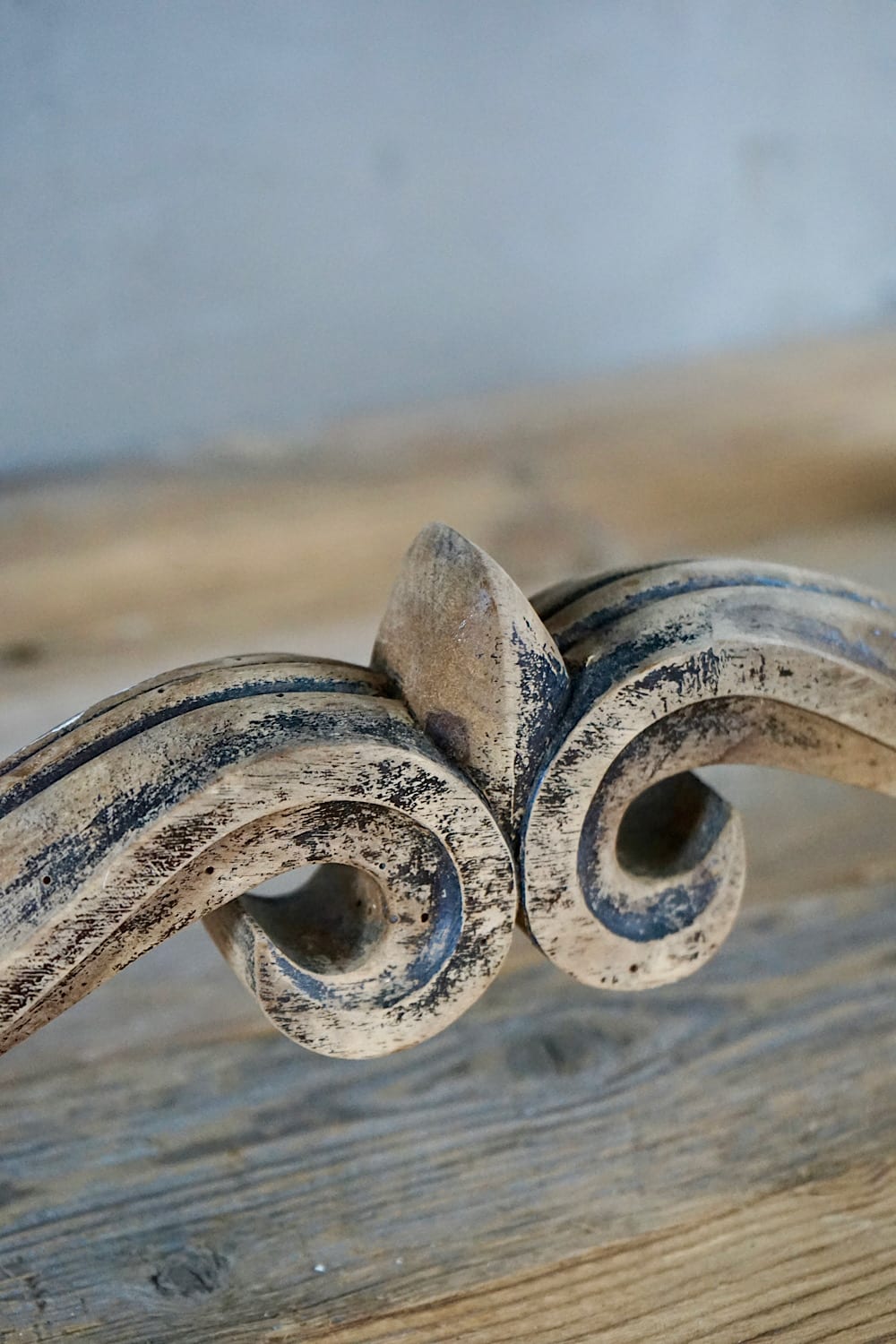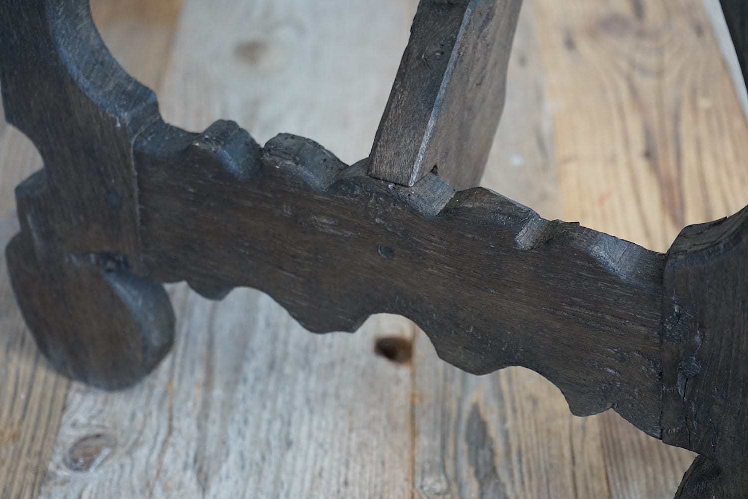 A fine Louis XIV period side table in bare walnut. Lovely form with turned column legs and scrolling stretcher with central finial.