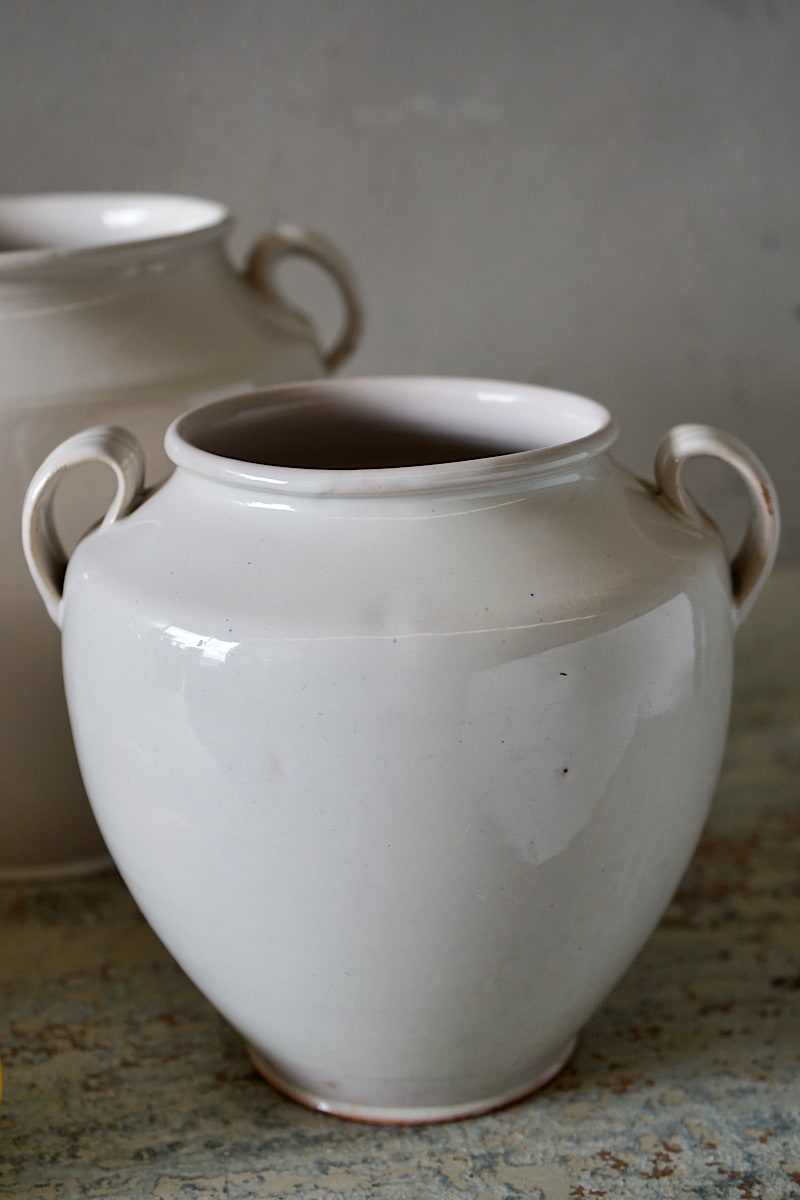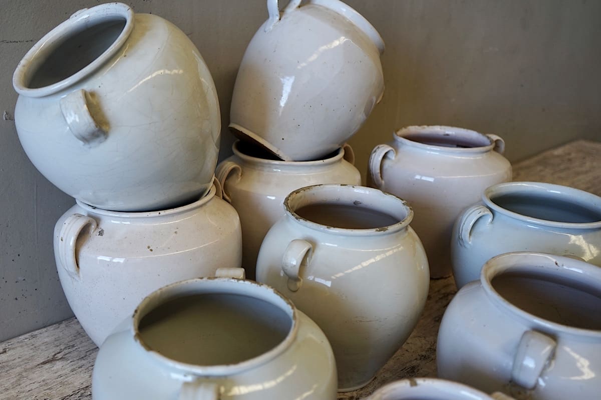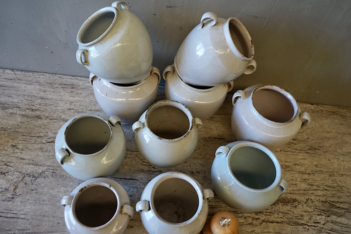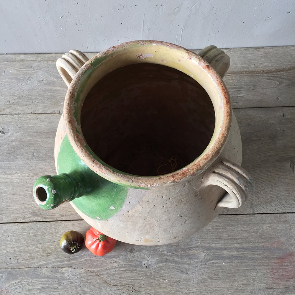 A collection of yellow glazed terracotta preserving pots from the South of France. Lovely shape and colour. These jars were traditionally used in French kitchens for storing jams and conserves.