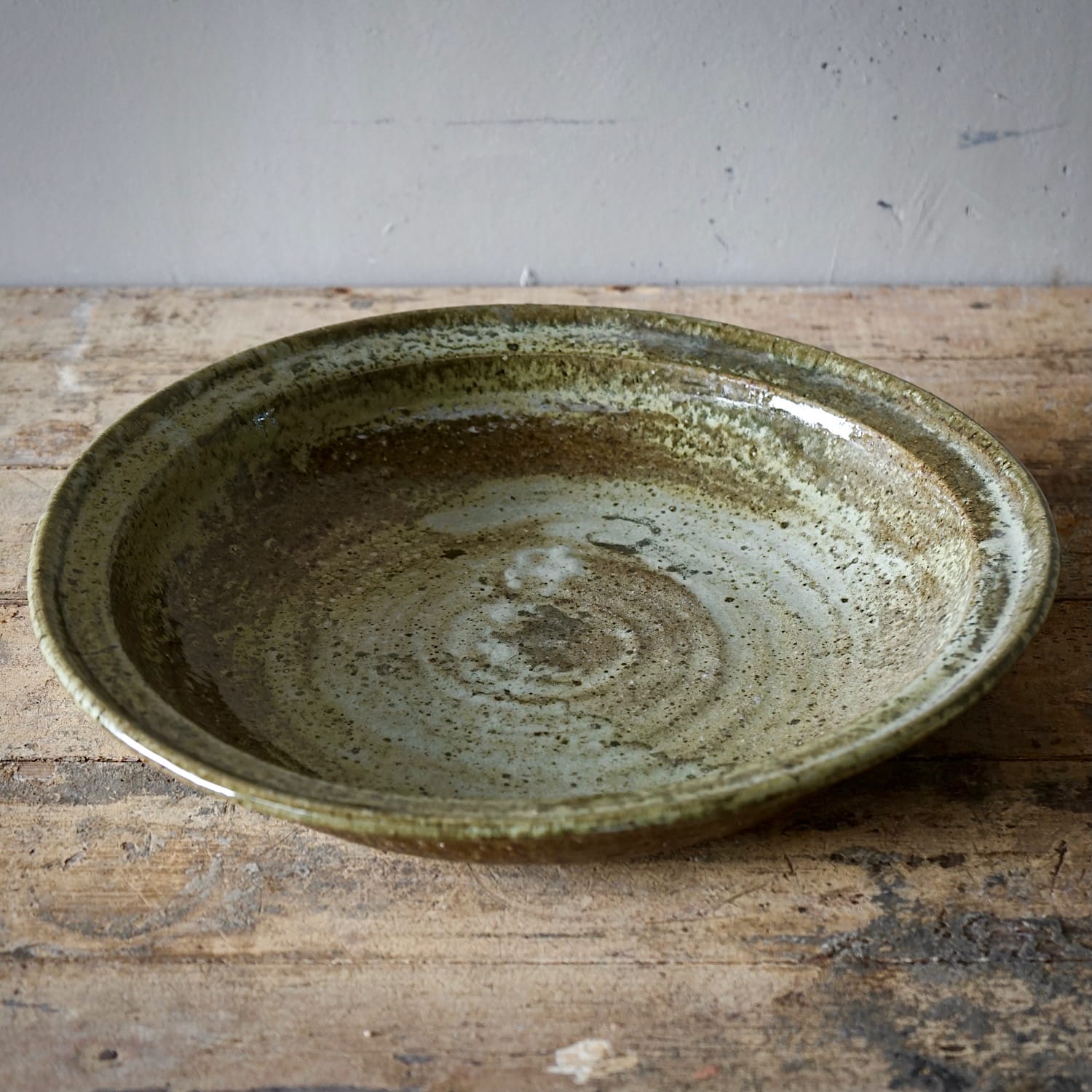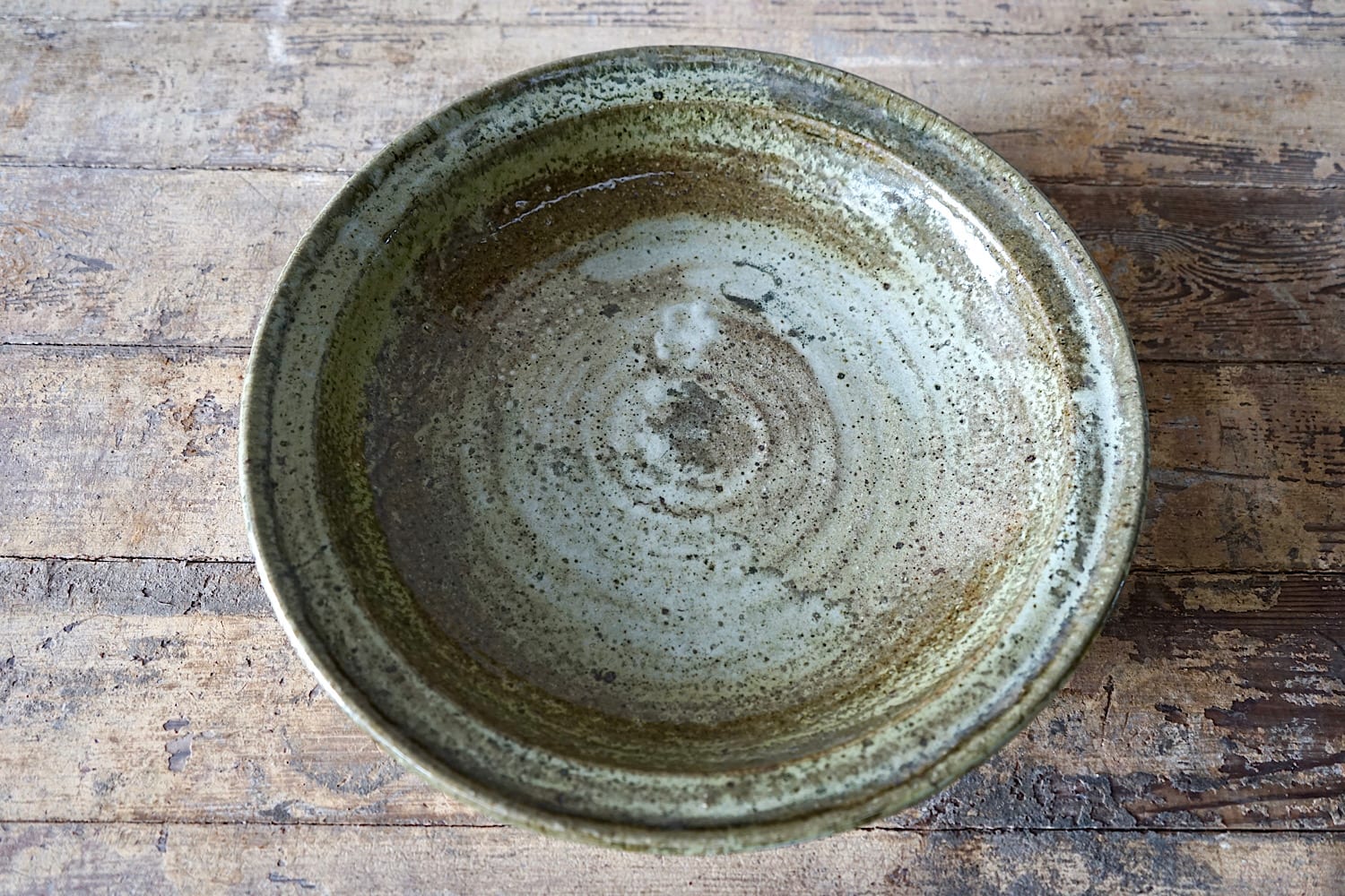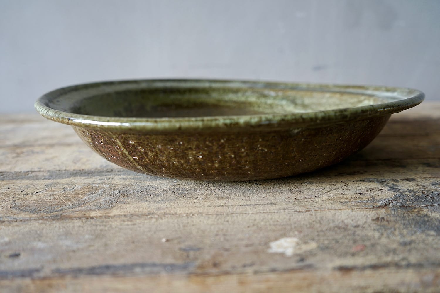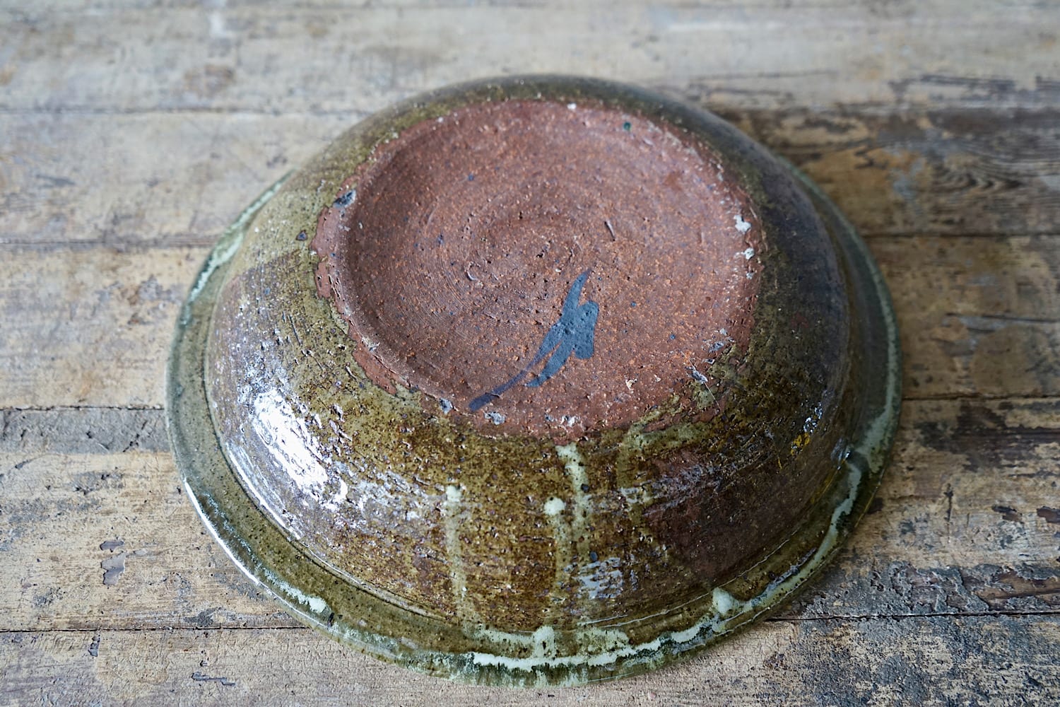 A terracotta olive oil jar from Provence with yellow & green glaze.
