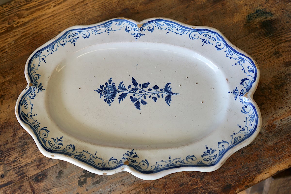 A decorative Gien dish carrying the ‘Renaissance’ pattern with scalloped edge.