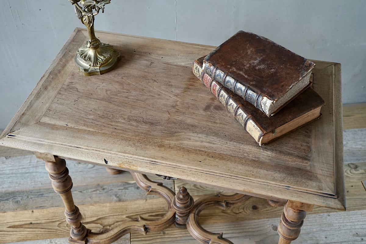 A highly decorative Louis XIV period oak side table with scalloped apron and turned legs. Excellent condition and good patina. A rare model, originally from our own personal collection from the Chateau de Saussignac.