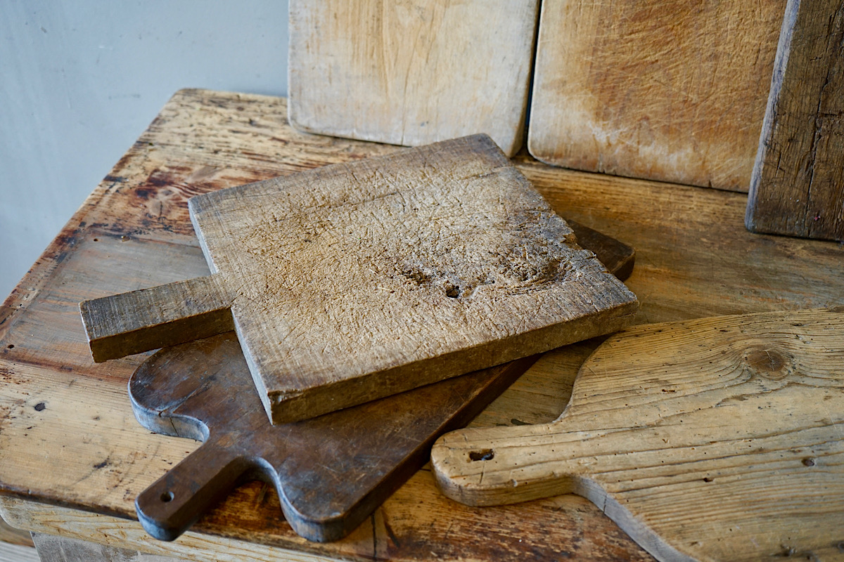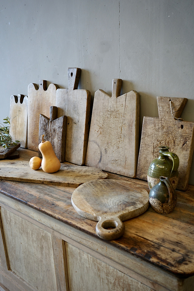 A superb collection of wonderfully decorative antique wooden bread boards. Great decoration for any serious kitchen. Details as per photos below.