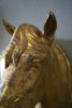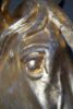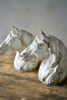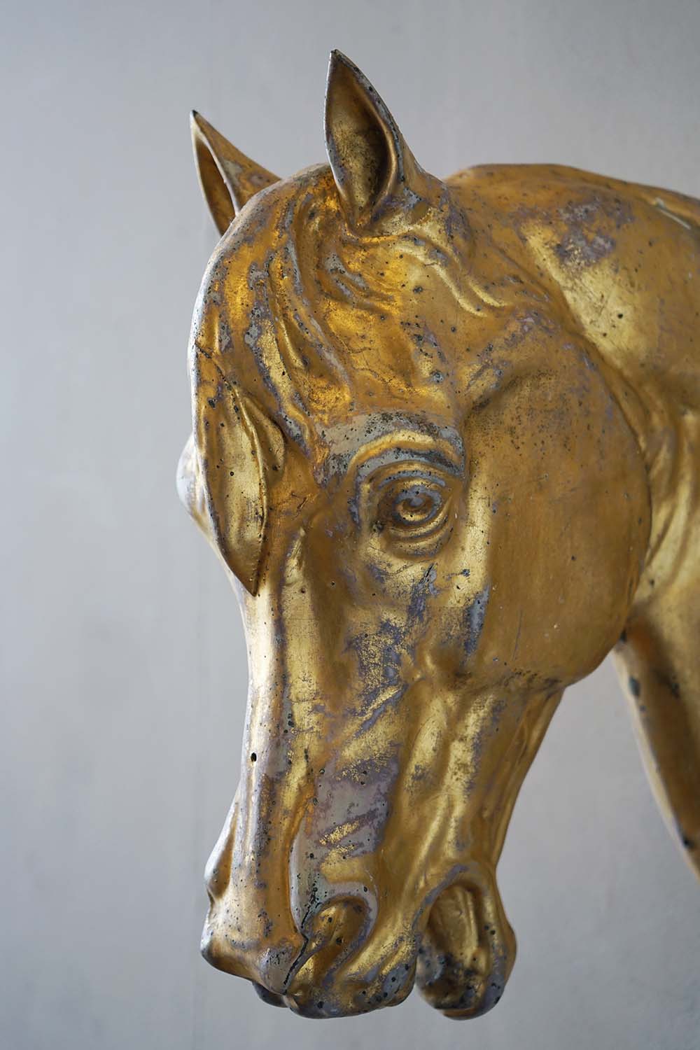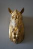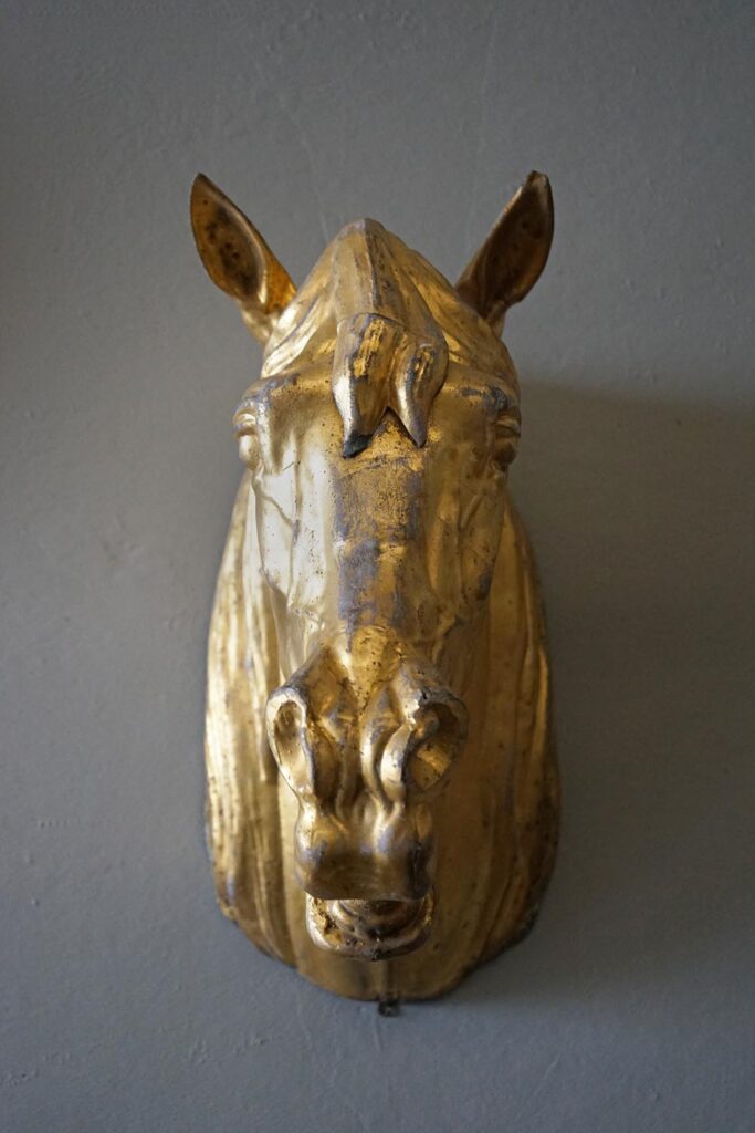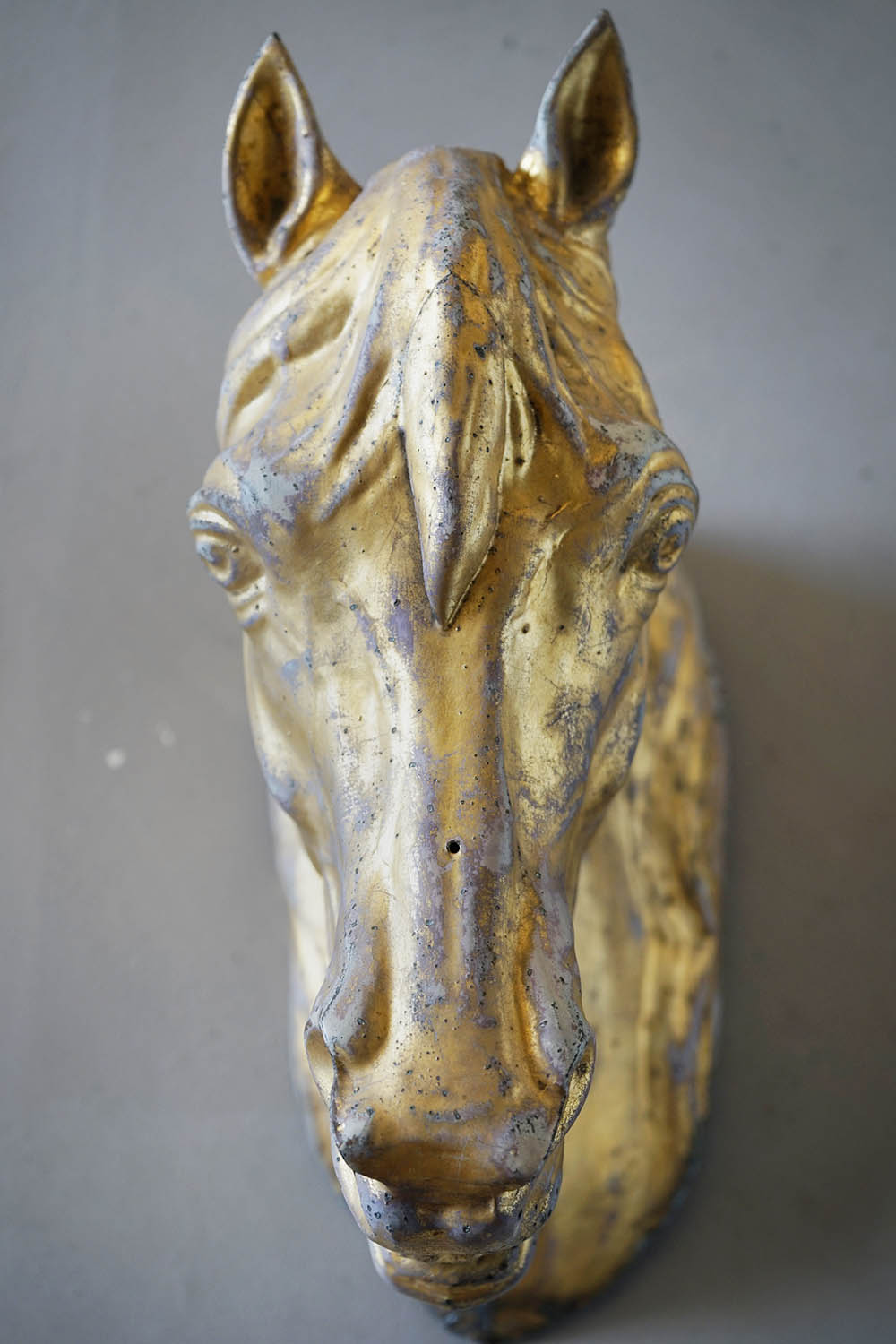 A rare cast bronze horse head sculpture with silver plating showing good patina.