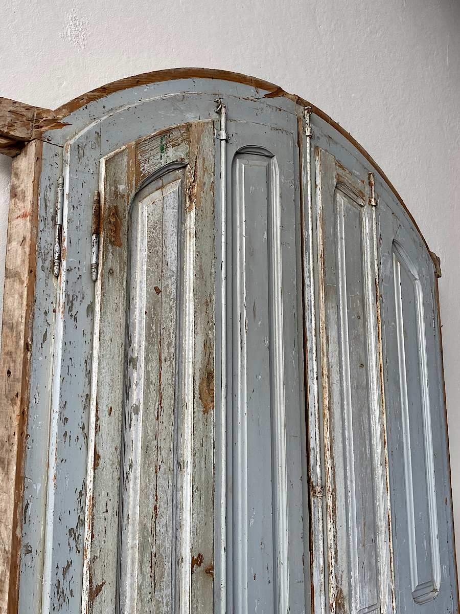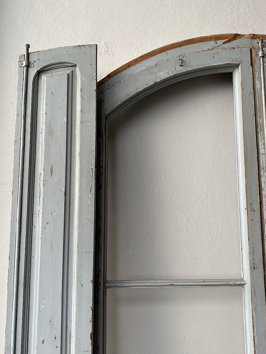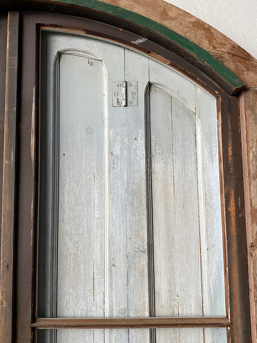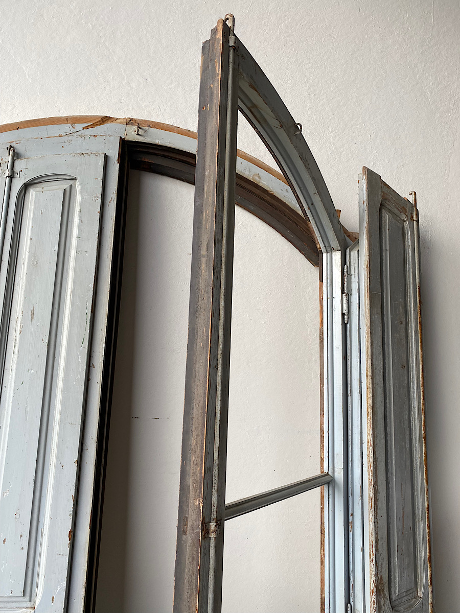 An impressive pair of late-18th century arch-top glazed doors from a chateau orangerie. Complete with their original internal bi-folding panelled shutters. Excellent, solid condition with their original paint.