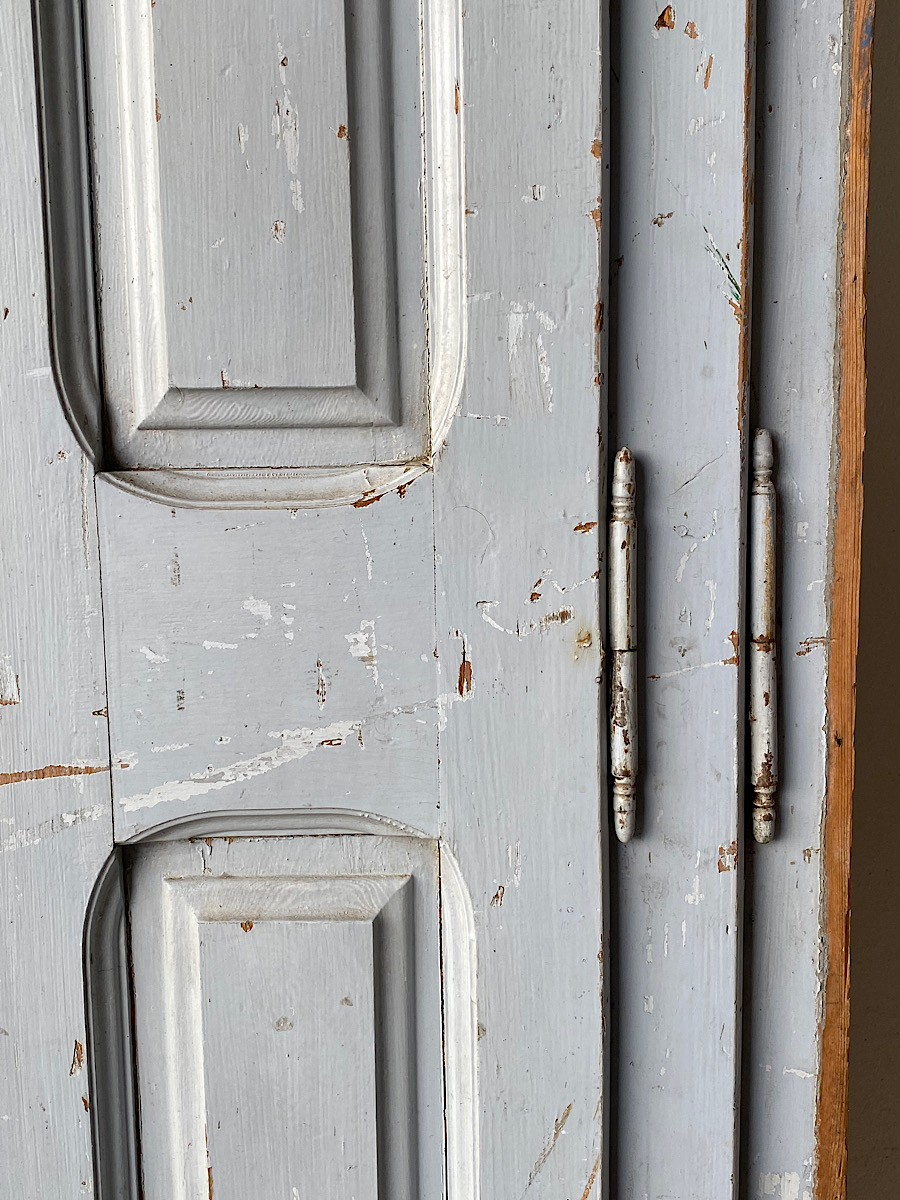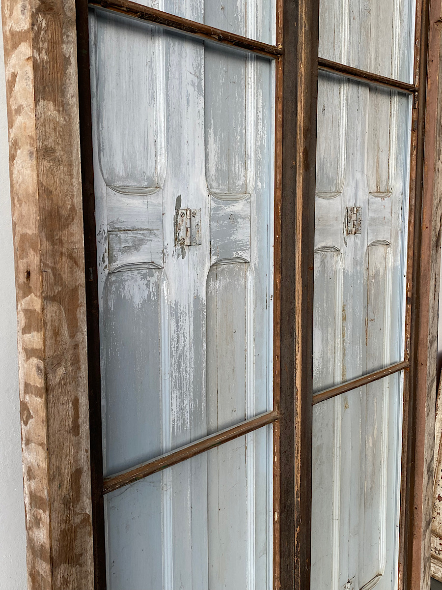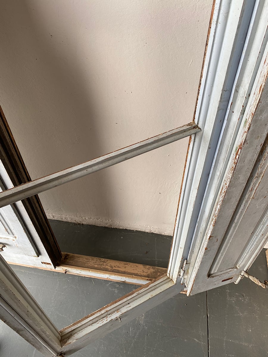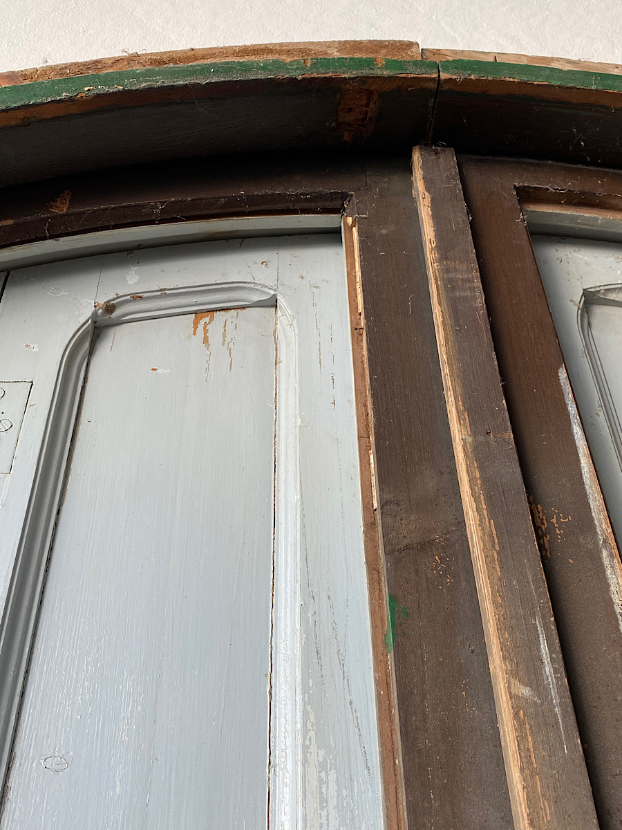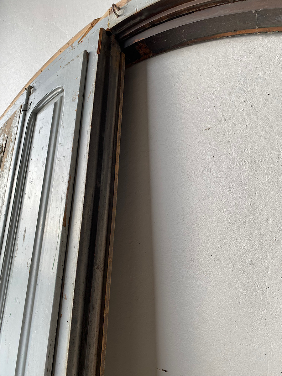 An impressive pair of late-18th century arch-top glazed doors from a chateau orangerie. Complete with their original internal bi-folding panelled shutters. Excellent, solid condition with their original paint.